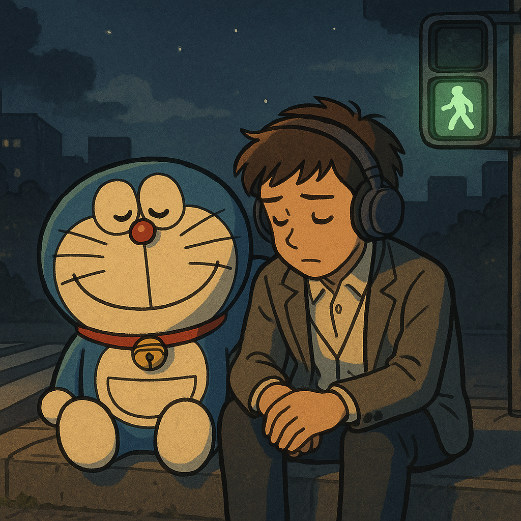 仕事で失敗して帰る夜、イヤホンからドラえもんの主題歌が流れた。